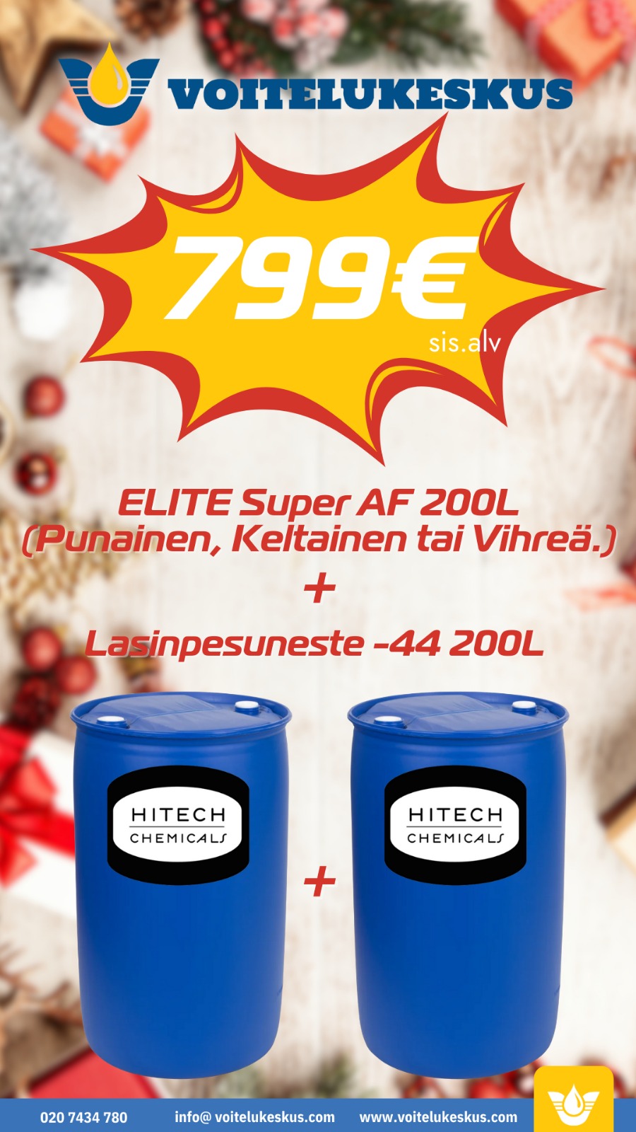 In the Door 7 offer, you get ELITE Super AF coolant in a 200 liter barrel (choose from red, yellow or green) and a 200 liter barrel of -44°C windshield washer fluid in one package.