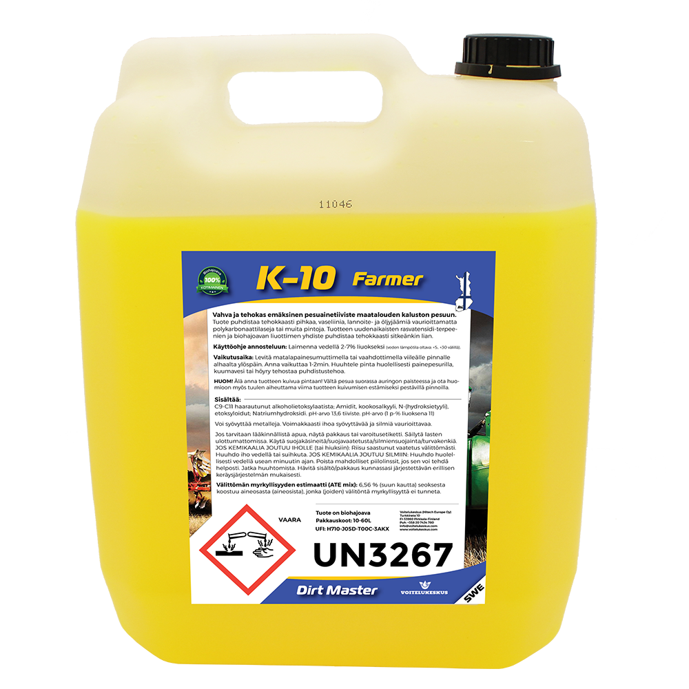Natriumhydroksidi < 5 %. Pakkaus 10L ja 60L