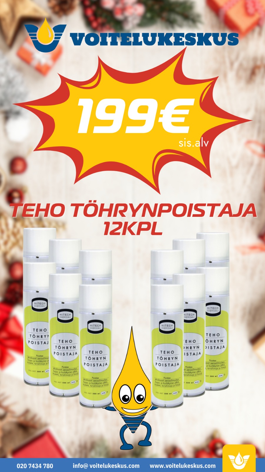 Luukku 16 -tarjouksessa saat TEHO Töhryn Poistaja -aerosolia kaksitoista (12) kappaletta yhtenä pakettina.