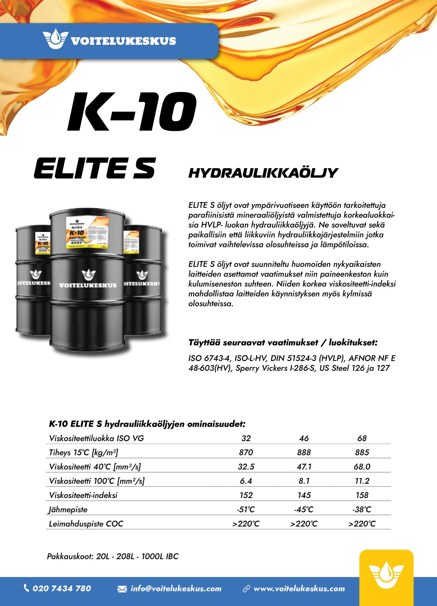 K-10 ELITE S 32 / 46 hydrauliöljy 1000 L