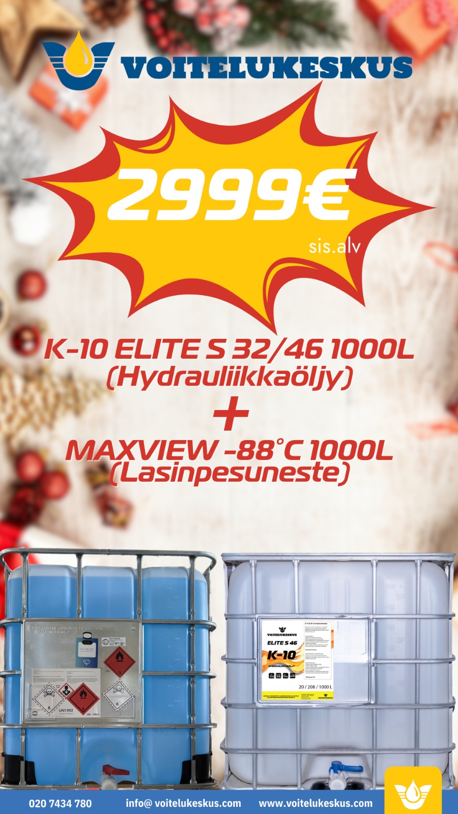 K-10 ELITE S 32 hydrauliöljy 1000L + MAXVIEW -88°C 1000L, K-10 ELITE S 46 hydrauliöljy 1000L + MAXVIEW -88°C 1000L